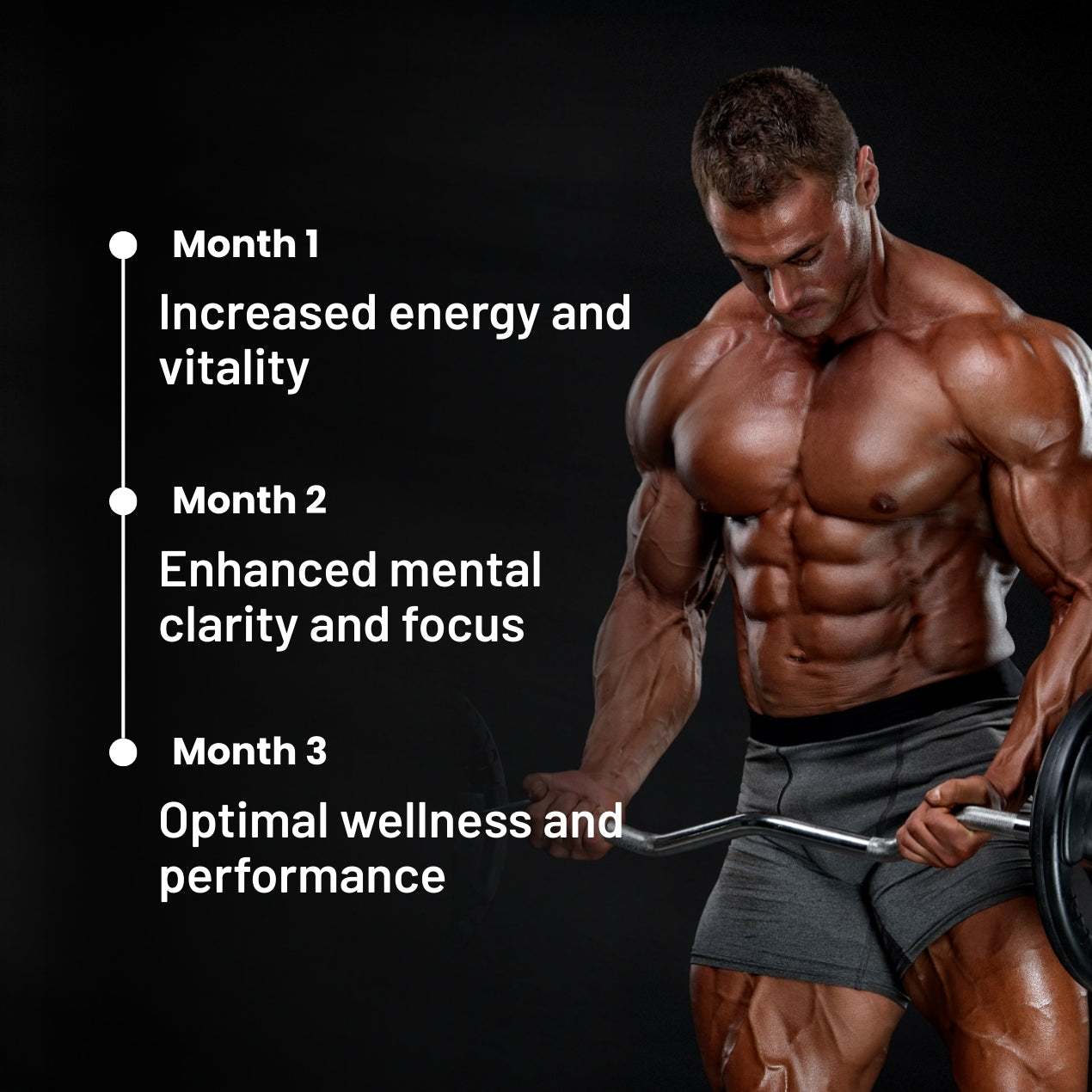 According to the product page, benefits may build over time — some users might notice increased energy and vitality within a month, with better mental clarity and performance by the second month, and more comprehensive wellness gains by the third month of consistent use.