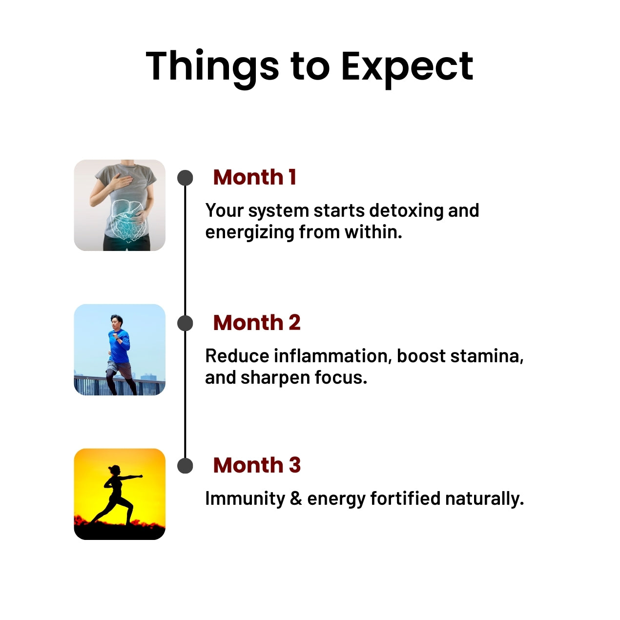 For optimal results, take the gummies regularly as per instructions (on or after a meal may help absorption, as with most dietary supplements) rather than sporadically. While individual results vary, some benefits — such as improved energy, digestion or mild immunity support — might become noticeable in a few weeks, but consistent use over time yields the best outcome.