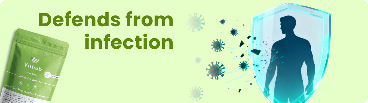 Vithub Immunity Booster Gummies are daily chewable supplements designed to support immune function and overall wellness. They contain a blend of vitamins and herbs — including Amla (Vitamin C), Zinc, Vegan Vitamin D₃, Giloy extract, Curcumin, and Ginger extract — aimed at boosting immunity, supporting bone & joint health, aiding digestion, and promoting overall vitality.
